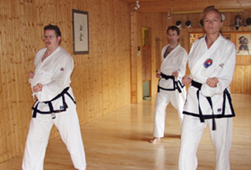Bereits Weißgurte (10. Kup) erlernen eine Hyong: Chon-Chi Hyong (Himmel und Erde). In den 19 Bewegungen dieser Hyong werden die ersten Techniken geschult und gefestigt. Unter Anleitung erfahrener Schüler und der ausbildenden Dan-Träger werden die Einsteiger an den Formenlauf herangeführt. |